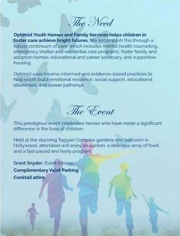 In October, the group celebrated the incredible life-changing work at Optimist and honored two champions for children, Matt Ware and Dennis Andolsek. The group also heard stories of success, including Lourdes Pichardo, a foster parent who has opened her home to over 70 children; the Luppers, a foster family with personal ties to the foster care system; and Dacia, a young lady who, having spent the majority of her childhood in the foster care system, has thrived due to her resiliency and the support of her foster family and staff at Optimist.
