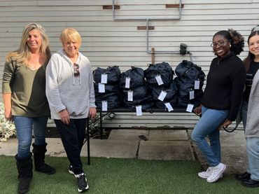 "On Nov. 11, 2022, Margi and Randi met Peju and Sophie at Saving Innocence to prepare 15 bags for trafficked victims who want to travel outside the state back home. Our Rotary club donated the funds to purchase the items that went into the bags and together we packaged the bags with a t-shirt, sweatpants, slippers, Addidas slides, a blanket, and hygiene items such as shampoo/conditioner, toothbrush/toothpaste, lotion, deodorant, lip balm, and a brush. After completing the bags we helped organize bins and bins of donated items into labeled bins that are used for victims to come and take what they need and also for employees of Saving Innocence to use for emergency items when called upon to help a victim in need."